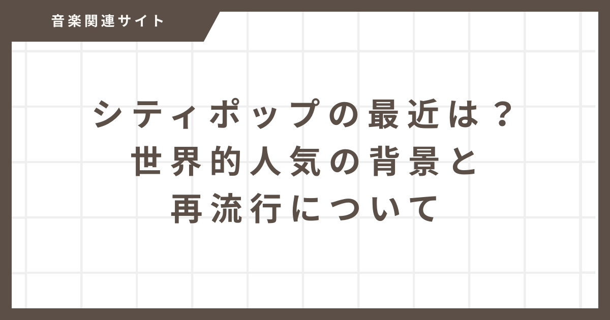本記事では、シティポップ再流行がいつから始まったのか、その背景や特徴、そして現在の動向について詳しく解説します。