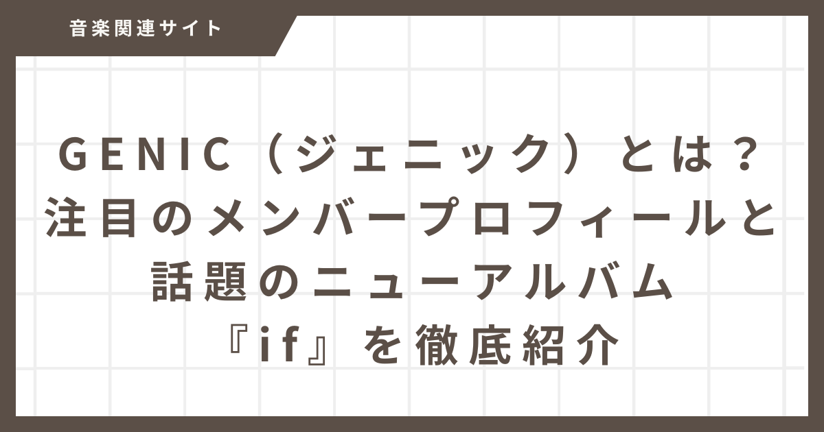 本記事では、GENICの魅力をより深く知ってもらうため、7人のメンバープロフィールやグループの成り立ち、所属事務所とその先輩アーティスト、さらに最新の活動情報まで詳しくご紹介します!