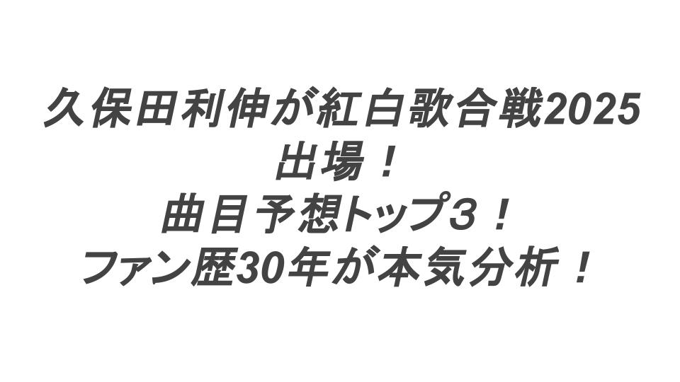 【本気予想】久保田利伸 紅白歌合戦2025 曲目予想トップ3