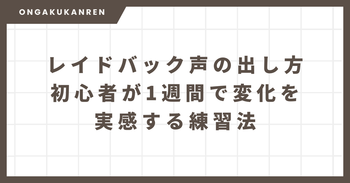 初心者の方によくある失敗は、大きく3つあります。①喉を締めてしまって「こもった声」になる、②息が多すぎて「かすれた声」になる、③力みすぎて「硬い声」になる、というパターンです。レイドバックな声の特徴は、息と声のバランスが取れた「柔らかいけど芯がある」音色です。自分の声を録音して聴いてみると、うまくいっていないときは声が前に出すぎていたり、逆に引っ込みすぎていたりすることに気づけますよ。