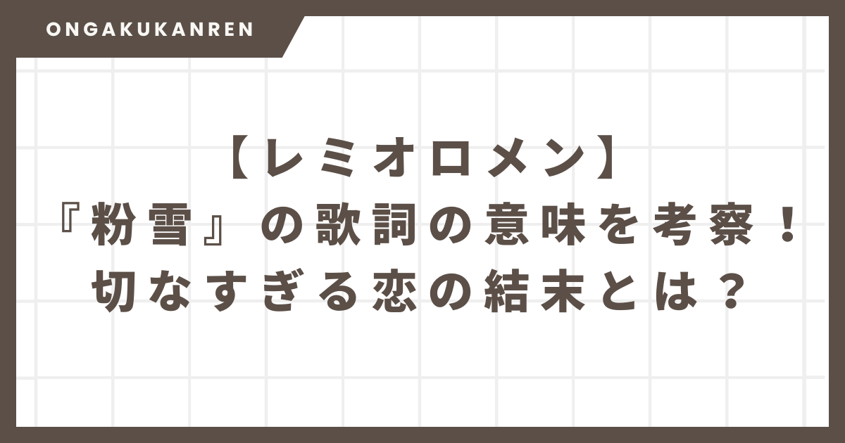 レミオロメンの『粉雪』は単なる冬ソングではありません。