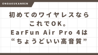 機材 初めてのワイヤレスならこれでOK。EarFun Air Pro 4は“ちょうどいい高音質” ワイヤレスイヤホンが欲しいと思って調べ始めたものの、種類が多すぎて結局どれを選べばいいのかわからなくなっていませんか。価格も性能もバラバラで、レビューを読めば読むほど迷ってしまうのが正直なところだと思います。そんな人に向けて、この記事では結... 2026.02.18 機材