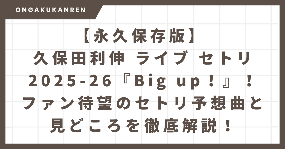 - 久保田利伸 ライブ セトリ 『久保田利伸 40th ANNIVERSARY CONCERT TOUR 2025-2026「Big up!」』
